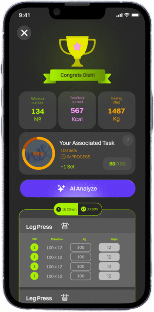 Get detailed insights as an AI evaluates your workout results after each session.